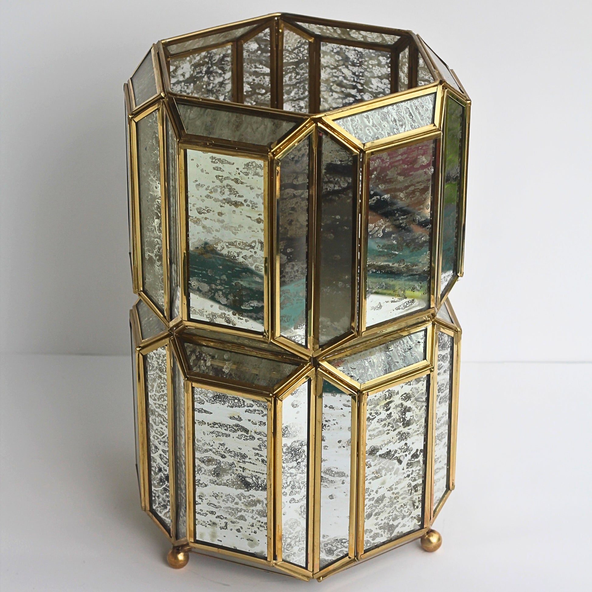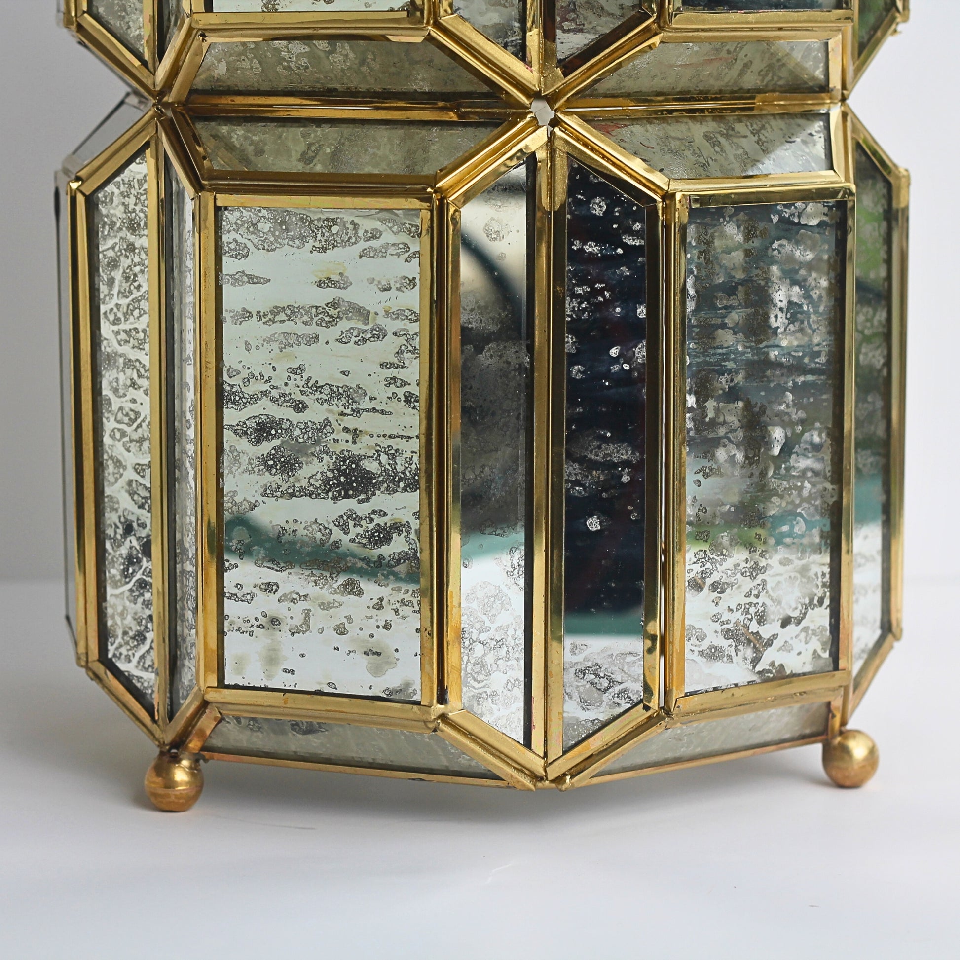 - Material: Brass frame with antique mercury glass panels