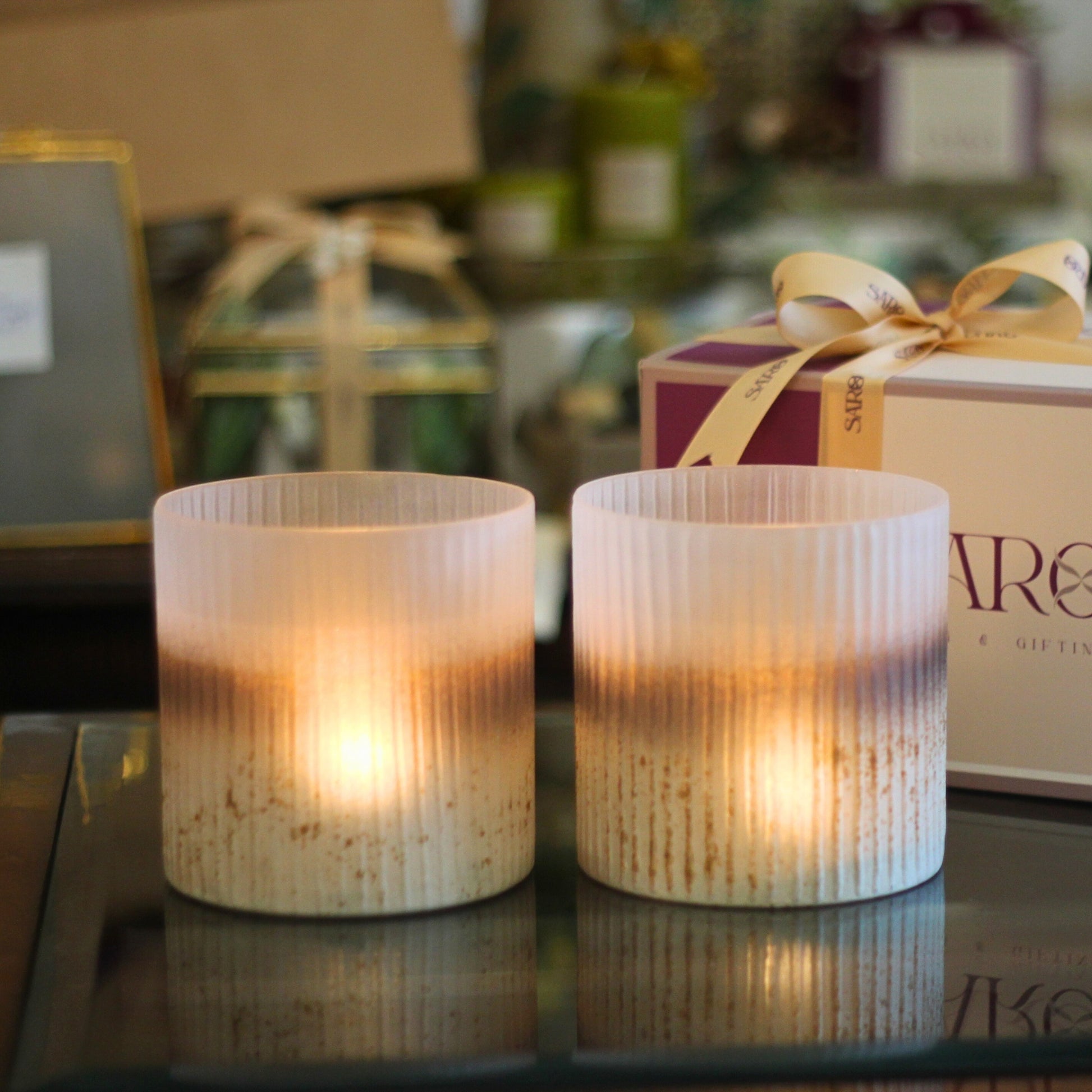 These Azure Votives make an ideal gift for any occasion, from housewarmings and festive celebrations to birthdays and anniversaries. Their dual functionality as a vase and candle votive ensures lasting utility, while the handcrafted frosted glass makes each piece unique. Packed beautifully, they add a personal yet sophisticated touch to gifting.
