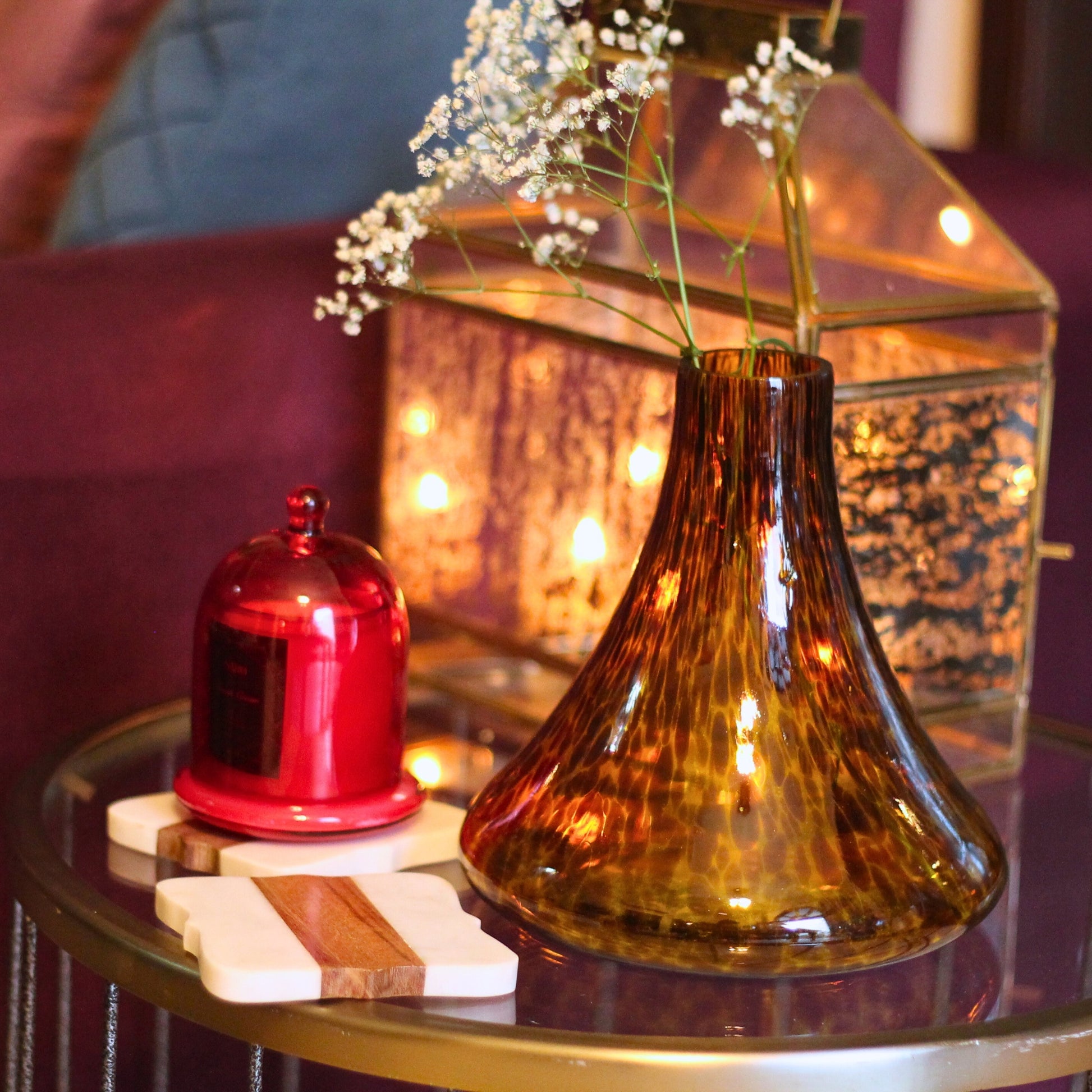 The Black Cheena Vase is a stunning example of craftsmanship, created using the traditional mouth-blowing technique. Its rich amber-black speckled finish gives it an earthy yet luxurious appeal, making it a statement décor accent for any modern home. Whether styled with fresh blooms, dried branches, or as a standalone art piece, this vase adds depth and sophistication to your living space.