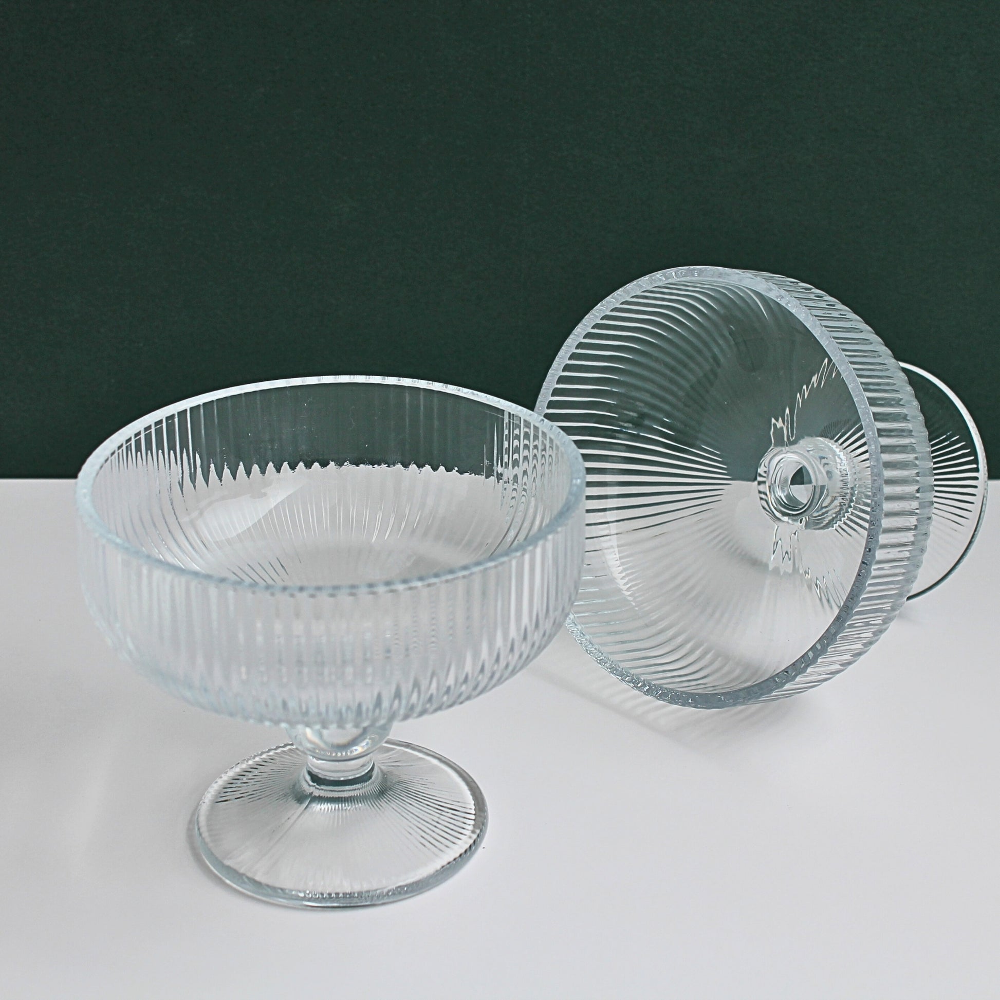 Elevate your table setting with our Set of 2 Dessert Bowls, designed to combine everyday functionality with timeless elegance. Crafted from high-quality clear glass, each bowl features a beautifully ribbed texture and a sturdy pedestal base, giving it a refined yet versatile appeal. Perfectly sized for serving desserts, fruits, ice creams, or even layered puddings, these bowls bring both style and convenience to your dining experience.