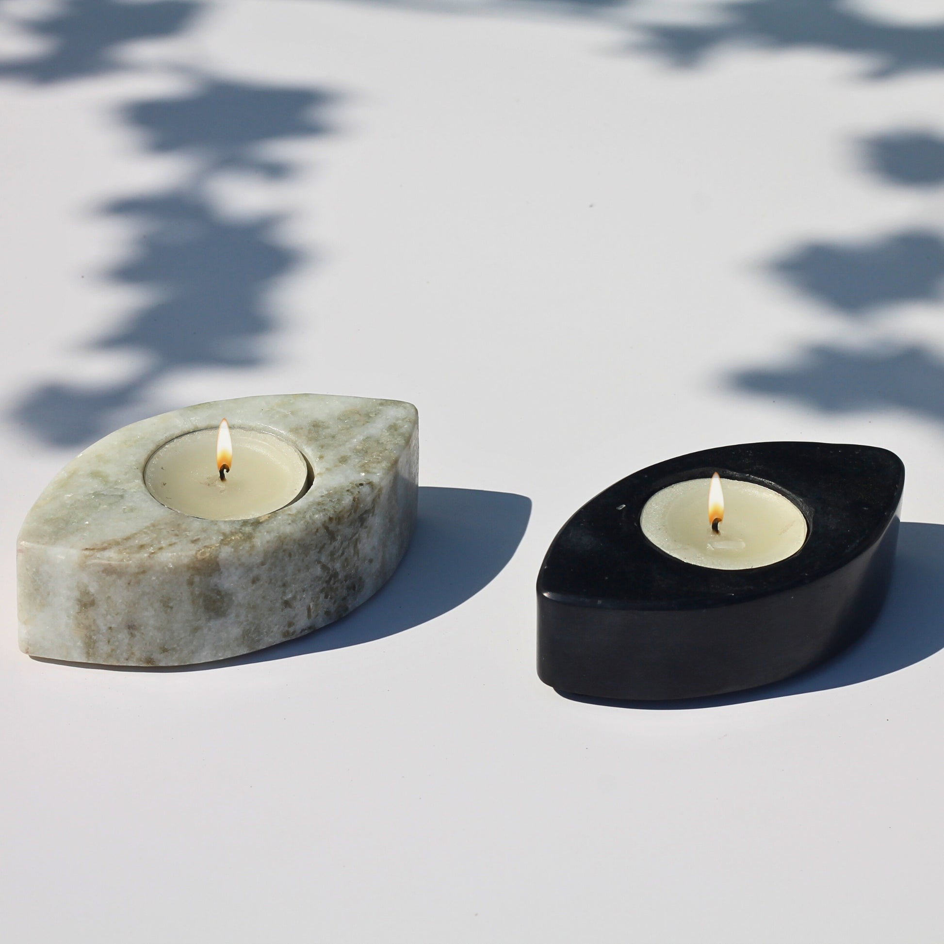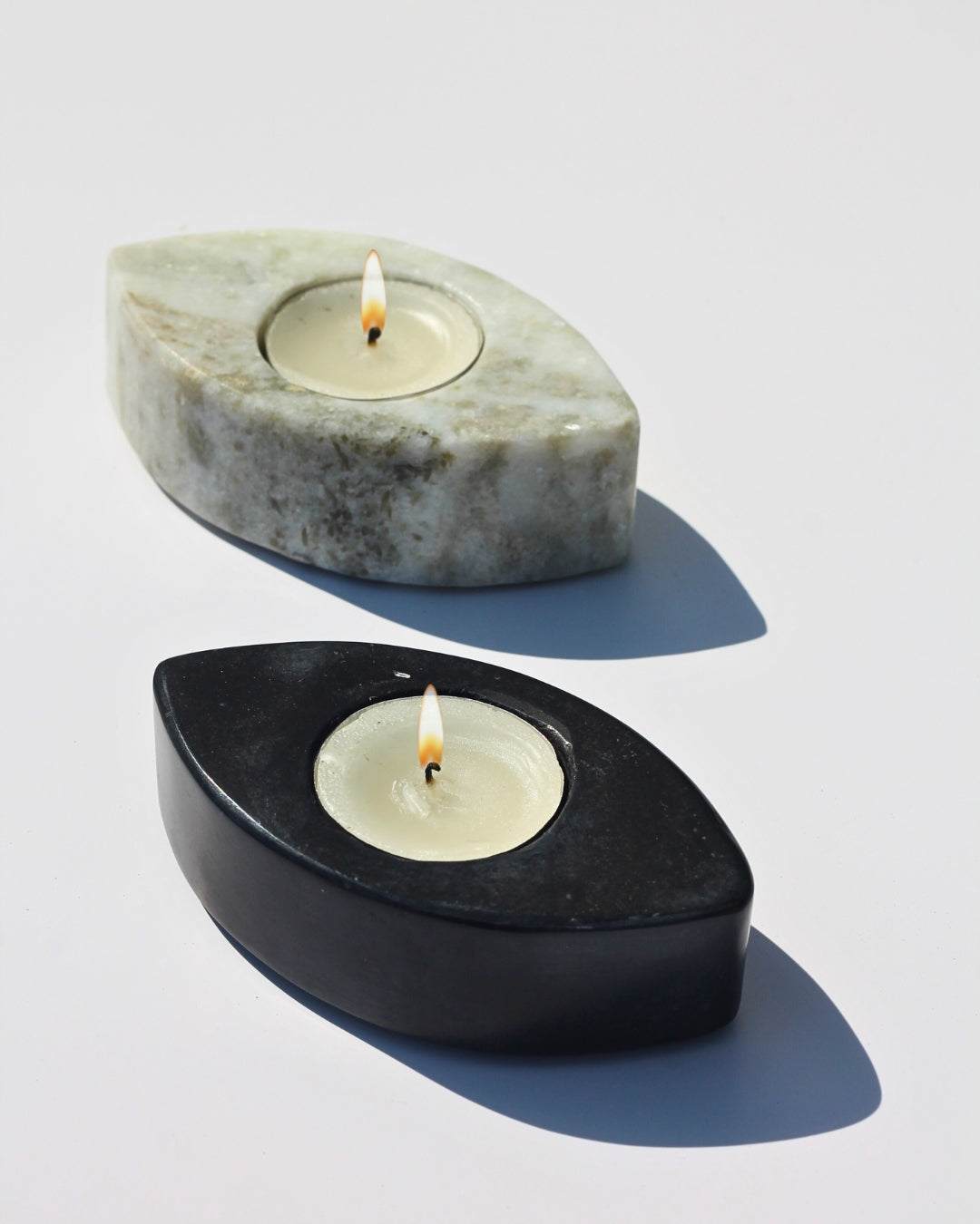 Bring a sculptural elegance to your evenings with SARO’s Marble Eyes T-Light Holders. Carved from natural marble in a sleek eye-shaped form, these versatile pieces cast a warm glow while doubling as modern décor accents.