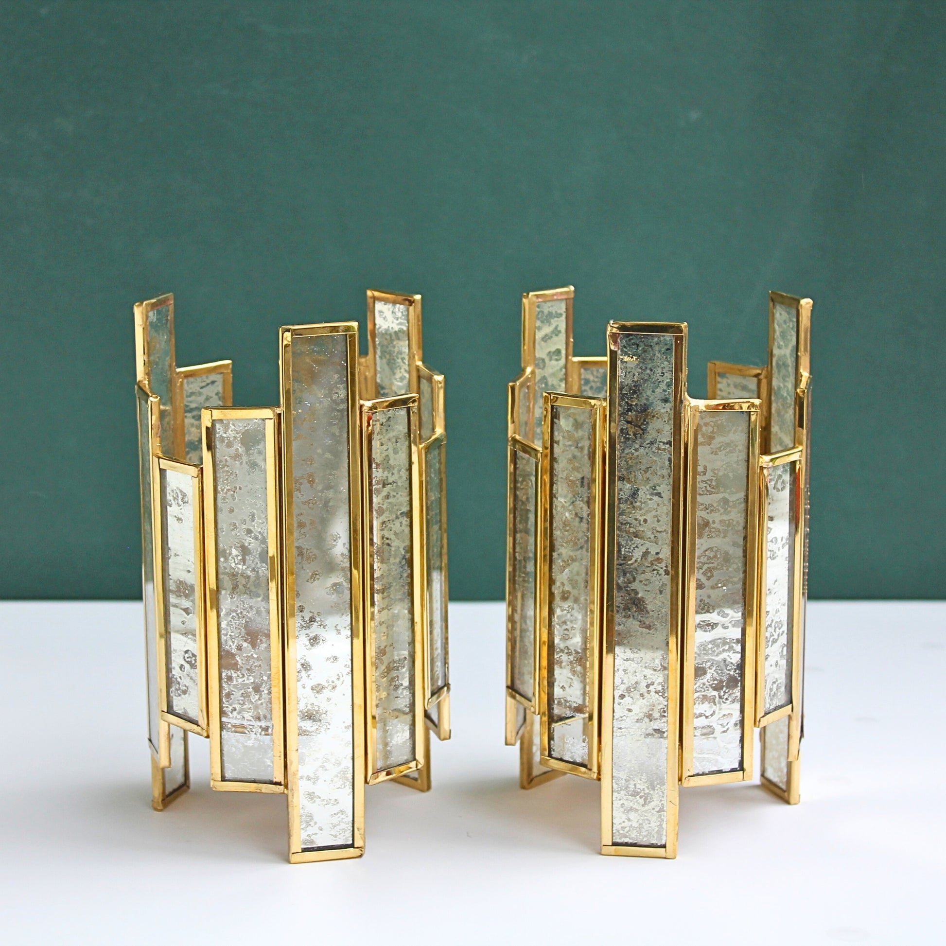 Illuminate your home with the Mercury T-Light Votive, where vintage charm meets modern sophistication. Handcrafted from mercury glass panels framed in polished brass, this votive scatters candlelight in a warm, antique glow. Its distressed finish and geometric silhouette add a luxurious depth, making it the perfect accent for festive tablescapes or cozy evenings.
