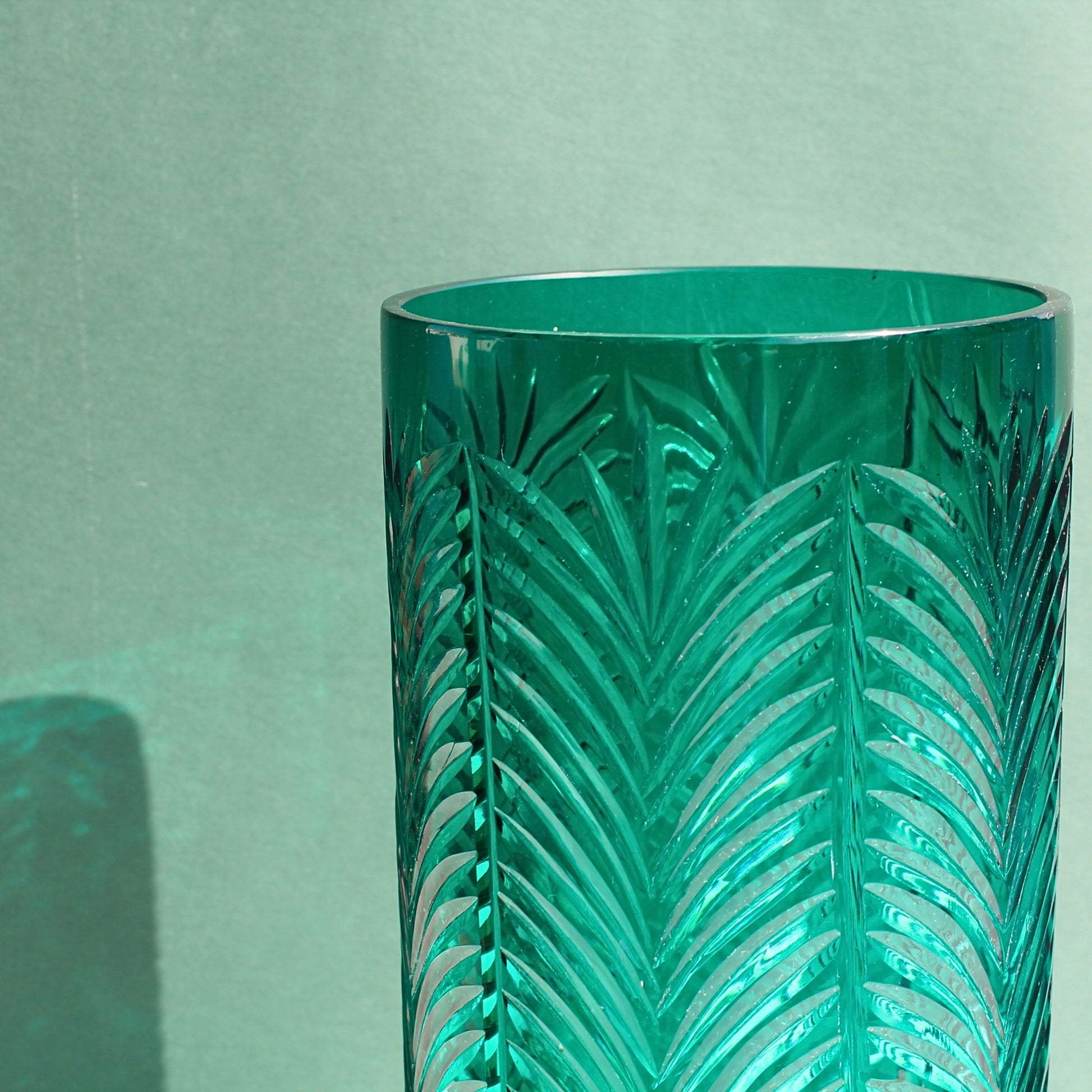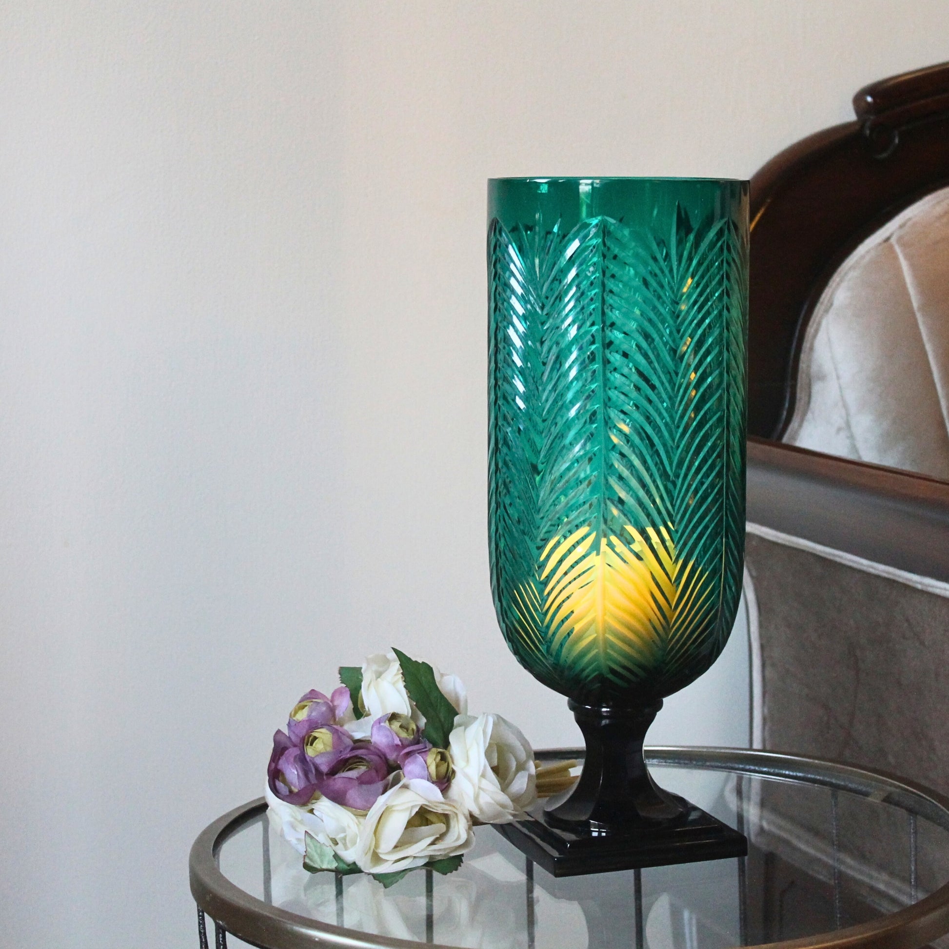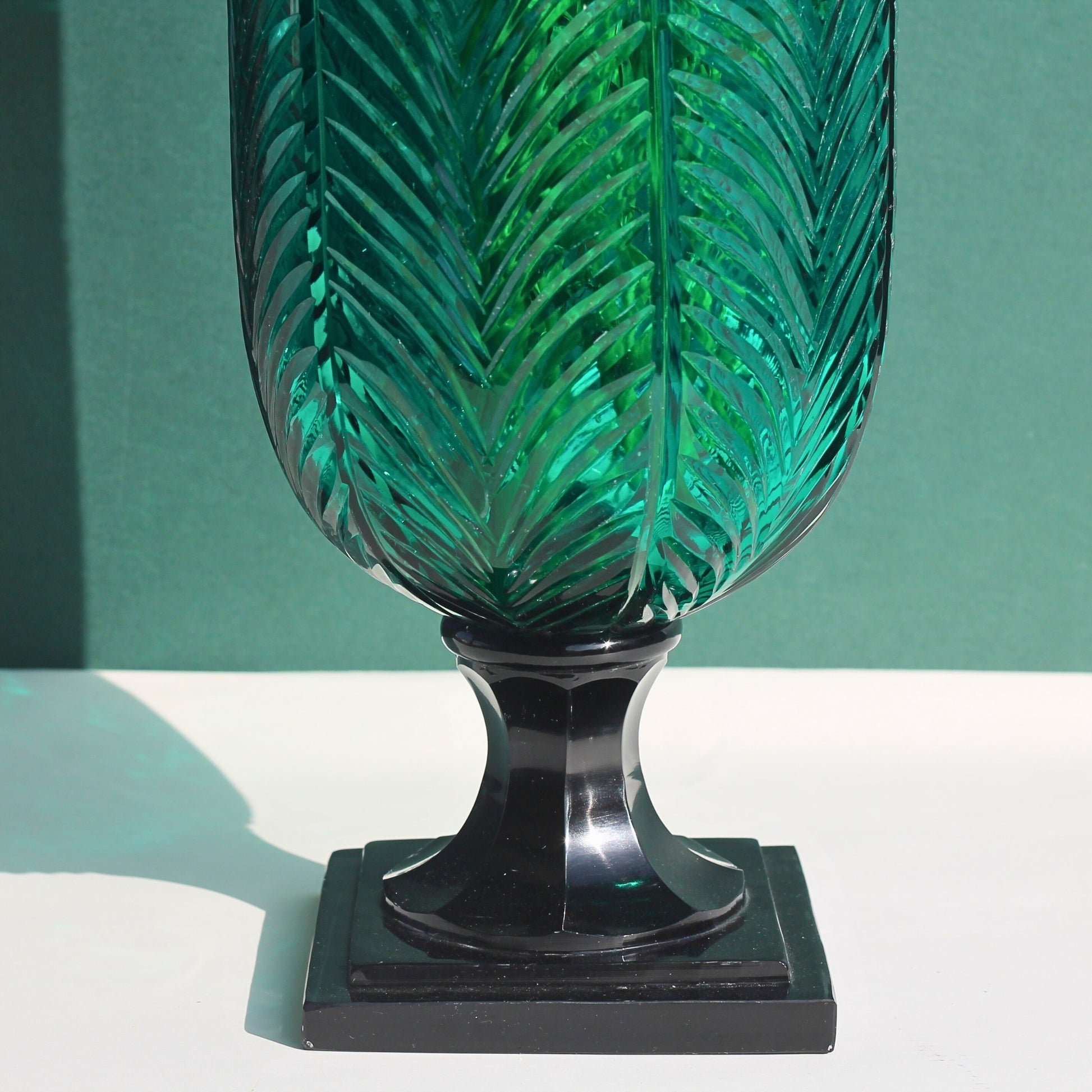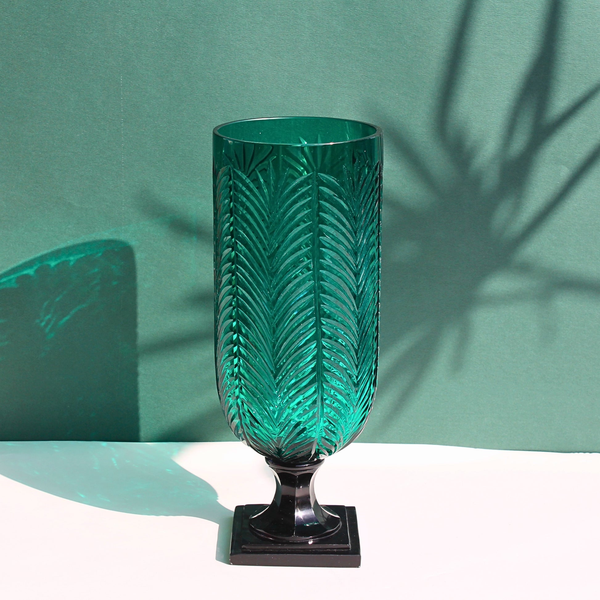 - Design: Palm-leaf inspired carving with bold emerald hue