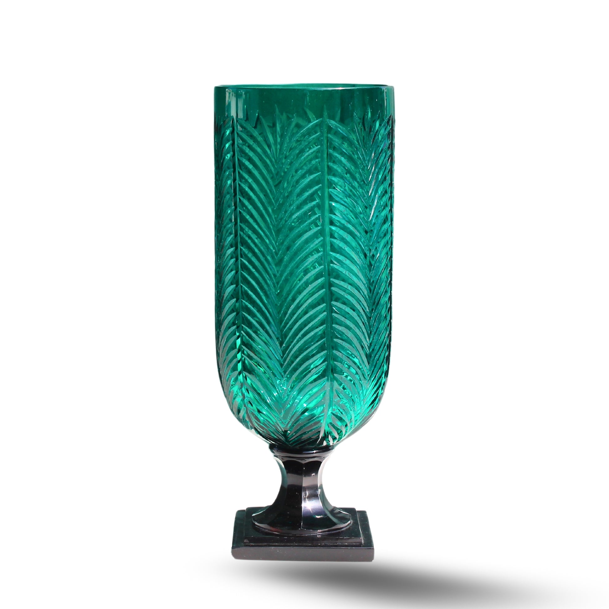 The Palm Hurricane is a majestic statement piece, hand-carved from pot glass by skilled artisans. Featuring an elegant palm-leaf motif, it exudes luxury and sophistication with every detail. This piece instantly elevates your décor with its sculptural form and rich emerald tone. A true collector’s item, it embodies grandeur and artisanal craftsmanship.