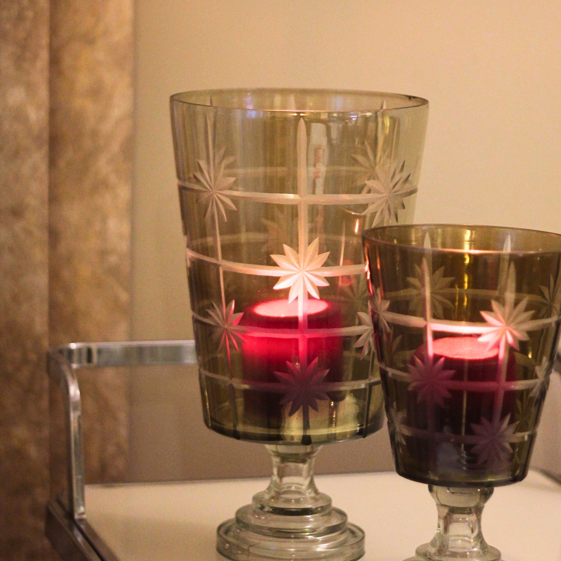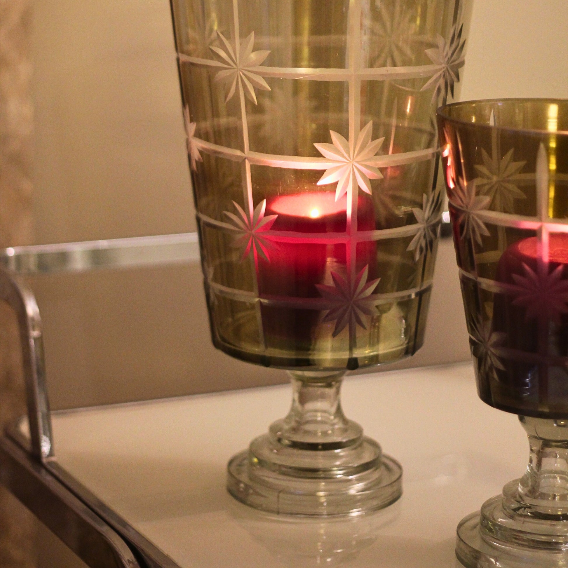 The Sitara Hurricane Set is a timeless fusion of luxury and artisanal detail. Each piece is hand-carved with delicate star motifs (Sitara meaning “star”), giving it an enchanting glow when lit with candles inside. Elevated on a classic glass pedestal base, these hurricanes radiate sophistication, making them perfect for both everyday ambience and festive grandeur.