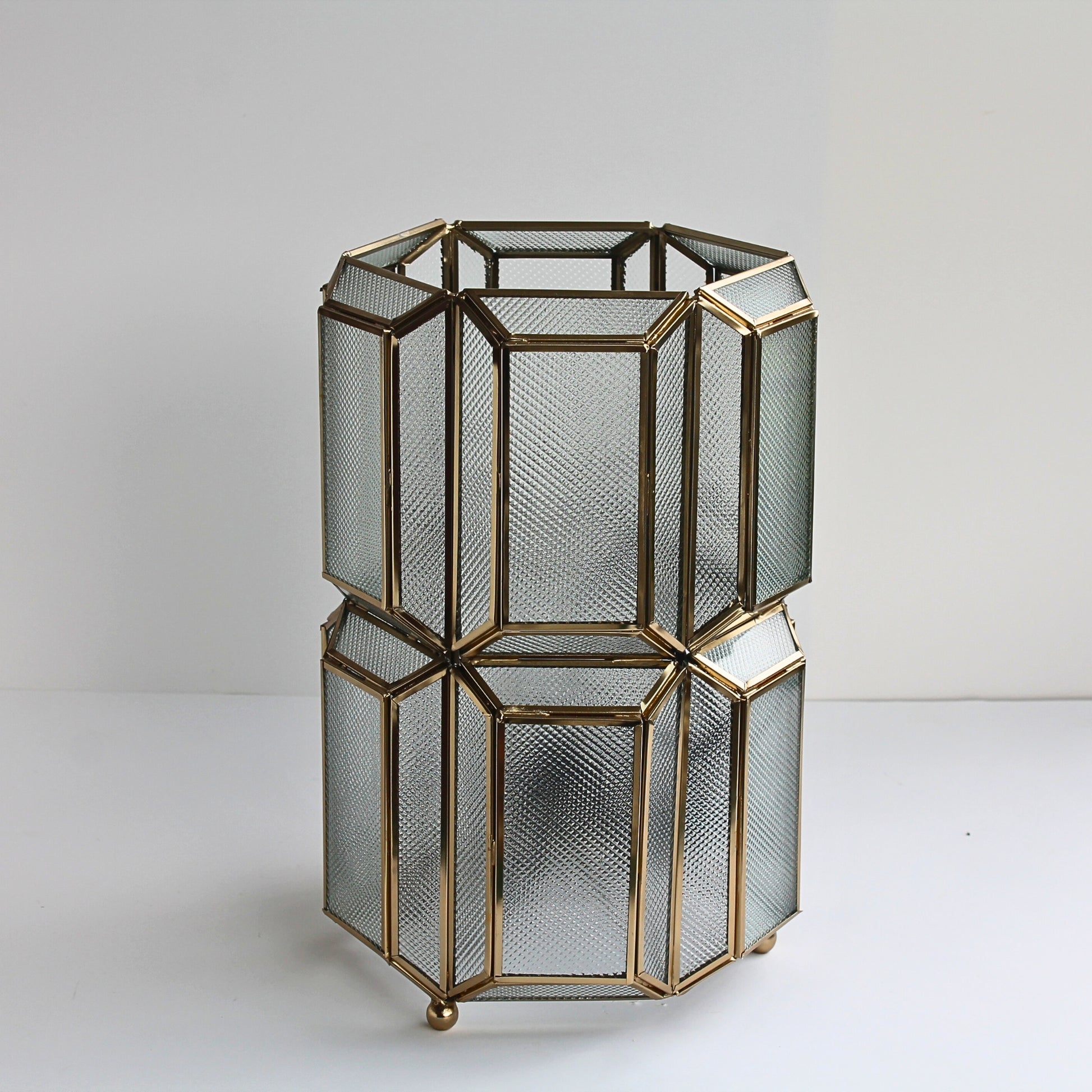 - Artisanal Craftsmanship: Made with precision-cut textured glass and brass detailing.